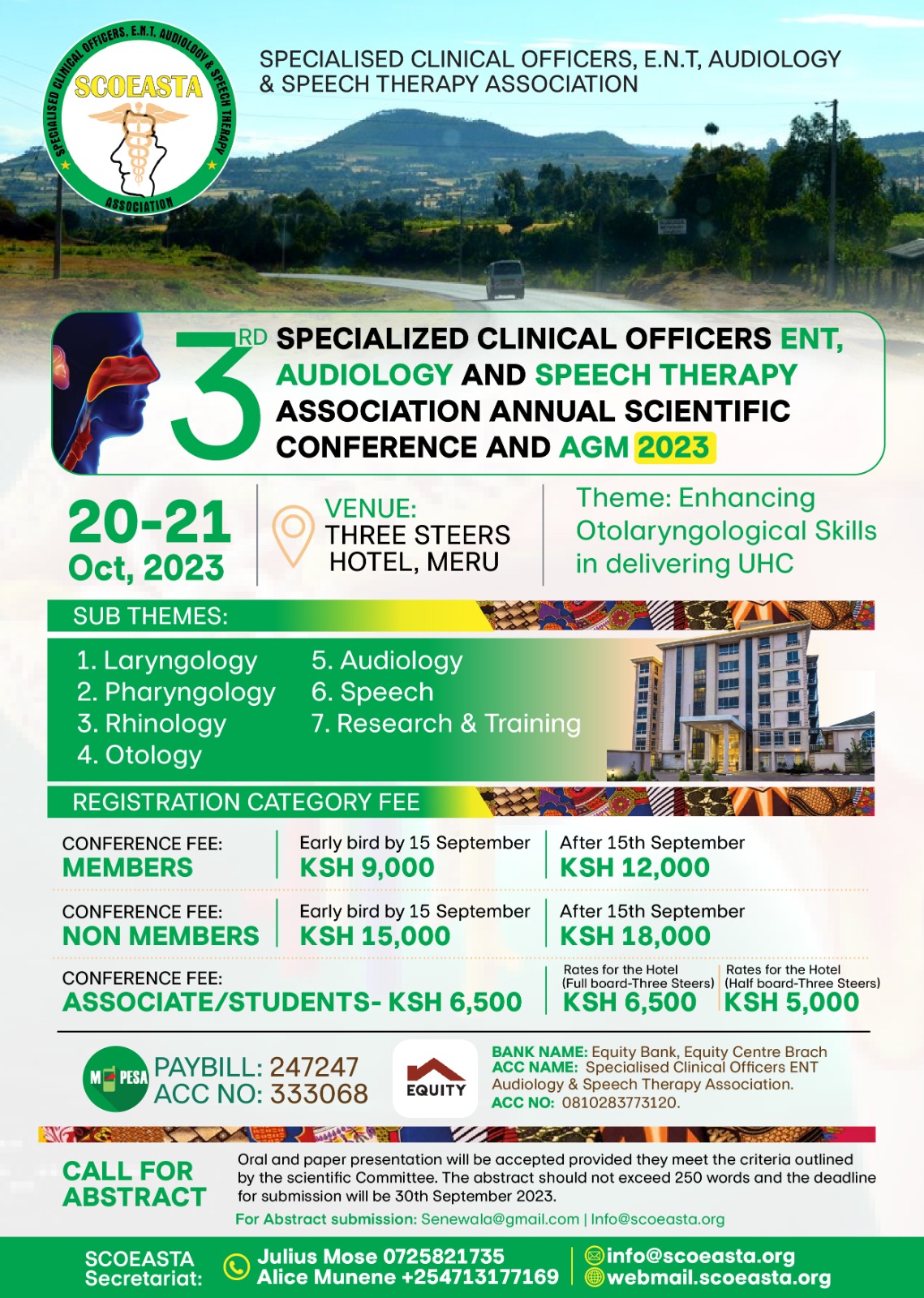 3rd Specialized Clinical Officers ENT, Audiology and Speech Therapy Association Annual Scientific Conference and AGM 2023